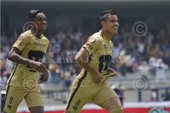 CIUDAD DE MÉXICO, 21AGOSTO2016.- El lateral Pablo Barrera anotó uno de los cinco goles, con lo que los Pumas golearon a los Rayados de Monterrey 5-3, en el estadio Olímpico. FOTO: MOISÉS PABLO /CUARTOSCURO.COM