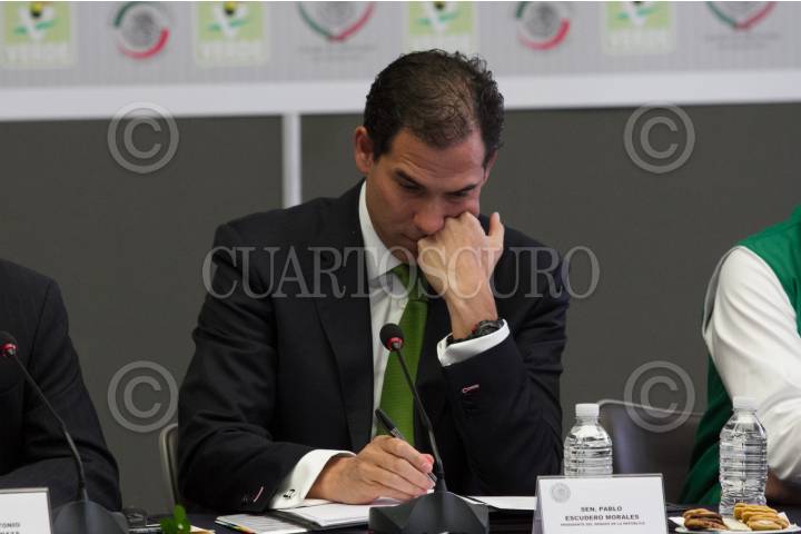 CIUDAD DE MÉXICO, 24ENERO2017.- Pablo Escudero, presidente de la mesa directiva del Senado, durante los trabajos de la Reunión Plenaria del Partido Verde Ecologista de México de la LXIII Legislatura de la Cámara de Diputados. FOTO: MOISÉS PABLO /CUARTOSCURO.COM