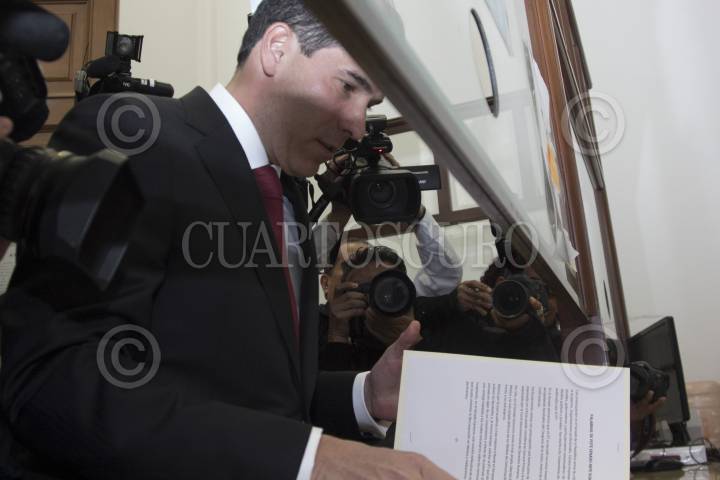 CIUDAD DE MÉXICO, 31ENERO2017.- Pablo Escudero, presidente del Senado, acudió a la Suprema Corte de Justicia de la Nación para dar entrega de una controversia constitucional en contra de los lineamientos de defensa de las audiencias del Instituto Federal de Telecomunicaciones (IFT), por considerar que podrían ir en contra de la libertad de expresión. FOTO: GALO CAÑAS /CUARTOSCURO.COM