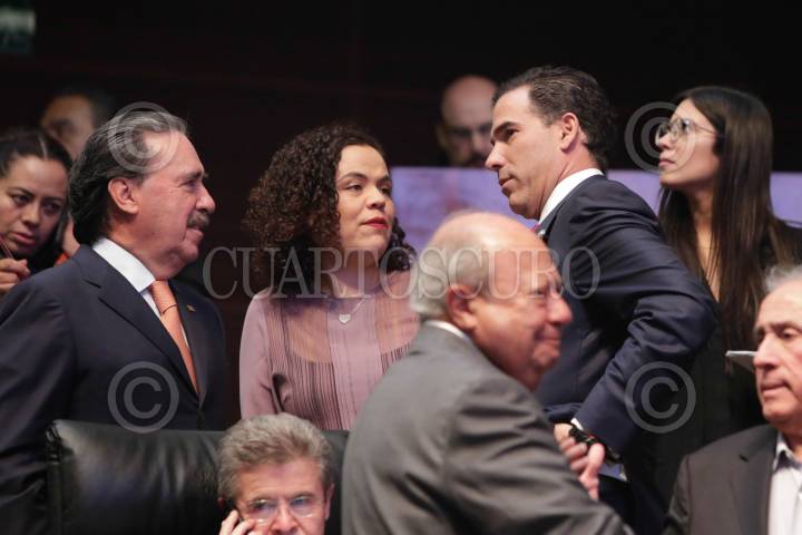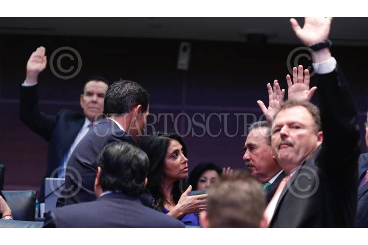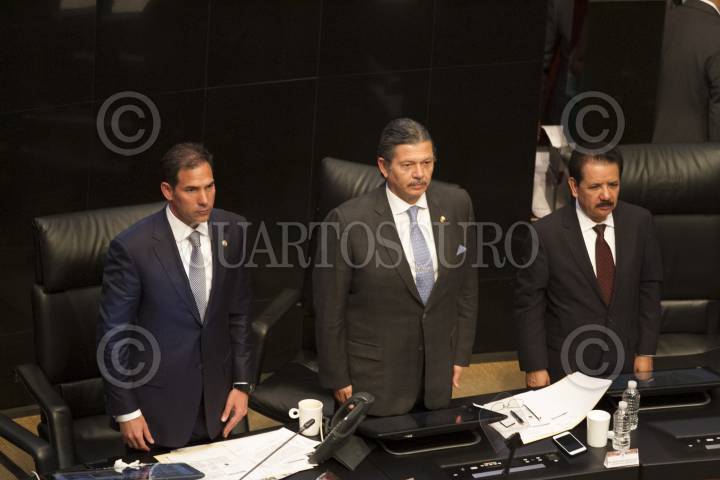 CIUDAD DE MÉXICO, 30MARZO2017.- Los senadores Pablo Escudero, Alejandra Barrales y Emilio Gamboa, en la sesión de la Cámara de Senadores. FOTO: CUARTOSCURO.COM