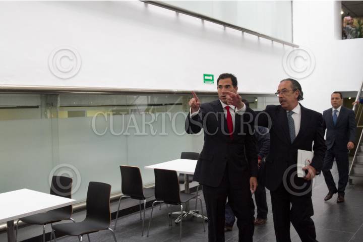 CIUDAD DE MÉXICO, 28JUNIO2017.- Pablo Escudero, presidente del Senado de la República, y Roberto Figueroa Martínez, director general de Servicios Administrativos, recorrieron la cafetería que da servicio a los trabajadores del Senado. Escudero también inauguró un puente peatonal que conecta las instalaciones del Senado de la República con su edificio administrativo, esto para brindarles mayor seguridad a los trabajadores, por que así ya no tendrán que salir a la calle para ir de un lado a otro, como lo hacían anteriormente. FOTO: MOISÉS PABLO /CUARTOSCURO.COM