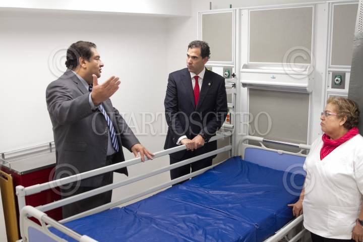 CIUDAD DE MÉXICO, 28JUNIO2017.- Pablo Escudero, presidente del Senado de la República, inauguró un puente peatonal que conecta las instalaciones del Senado de la República con su edificio administrativo, esto para brindarles mayor seguridad a los trabajadores, por que así ya no tendrán que salir a la calle para ir de un lado a otro, como lo hacían anteriormente. El integrante del Partido Verde Ecologista de México también recorrió una cafetería y el área médica que fueron remodelados. En la imagen el doctor Omaña de servicio médicos explica parte de la atención que se ofrece a los trabajadores de la Cámara Alta. FOTO: MOISÉS PABLO /CUARTOSCURO.COM
