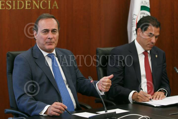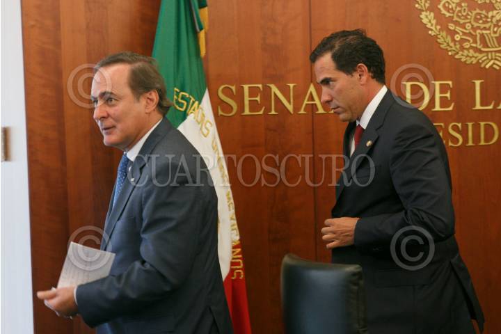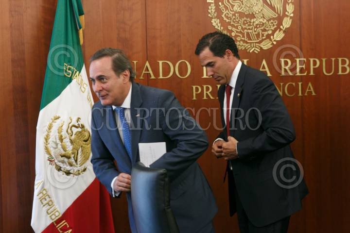 CIUDAD DE MÉXICO, 08AGOSTO2017.- Juan Pablo Castañón, presidente del Consejo Coordinador Empresarial (CCE), y Pablo Escudero, presidente de la mesa directiva del Senado de la República, ofrecieron una conferencia de prensa tras concluir una reunión entre los líderes de las principales cámaras empresariales y comerciales con integrantes de la Cámara Alta, con el tema de la renegó citación del Tratado de Libre Comercio de América del Norte. FOTO: MOISÉS PABLO /CUARTOSCURO.COM