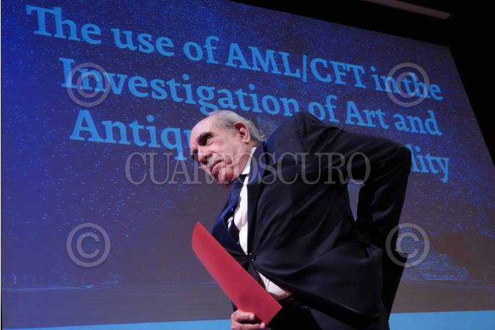 Pablo Gómez Álvarez, titular de la Unidad de Inteligencia Financiera, durante la Ceremonia de inauguración de la Conferencia regional sobre "El uso de la Lucha contra el lavado de Activos y la Financiación de Terrorismo (ALA/CTF) en la Investigación de la Criminalidad del Arte y las Antigüedades”