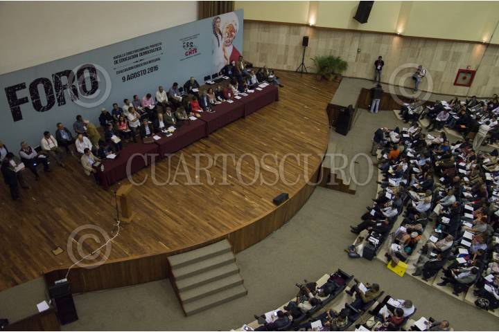 CIUDAD DE MÉXICO, 09AGOSTO2016.- Enrique Enríquez, secretario general de la sección 9 de la CNTE; Ramos Reyes, dirigente de la sección 14 de la CNTE; Víctor Manuel Zavala, líder de la sección 18 de la CNTE; Víctor Hugo Montoya, secretario general de la sección 34 de la CNTE; Luis Antonio Rosales Narvaez, representante de la sección 7 de la CNTE; el investigador y catedrático Pablo González Casanova; Hugo Aboites, Rector de la Universidad Autónoma de la Ciudad de México (UACM); el padre Alejandro Solalinde; Melitón Ortega, padre de familia de los 43; Adolfo Gilly, historiador y docente de la Facultad de Ciencias Políticas y Sociales de la UNAM y la periodista Denise Dresser, fueron algunas de las personalidades que integraron la mesa de inauguración del Foro “Hacia la Construcción del Proyecto de Educación Democrática” propuesto por la CNTE para establecer una verdadera Reforma Educativa. FOTO: GALO CAÑAS /CUARTOSCURO.COM