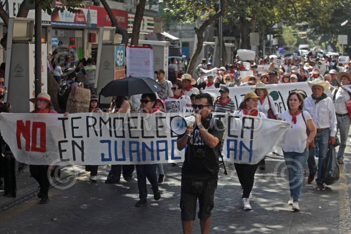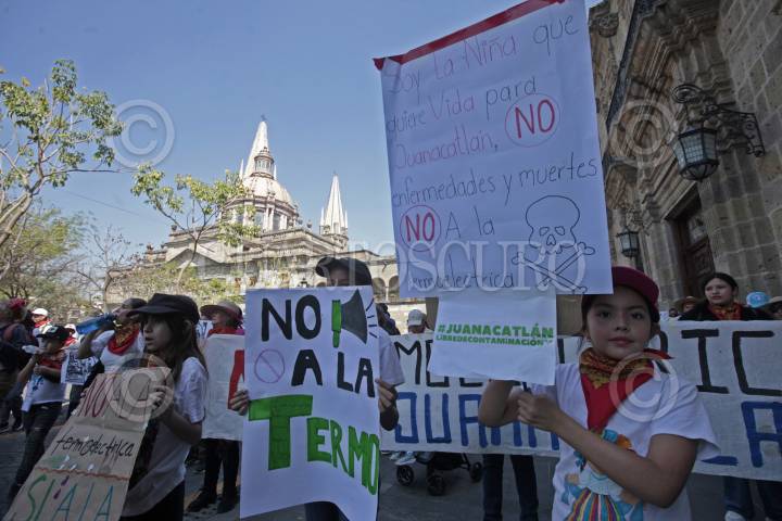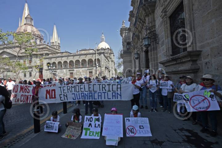 GUADALAJARA, JALISCO. 28FEBRERO2025.- Habitantes de Juanacatlán y El Salto protestaron para manifestar su rechazo por la reactivación del proyecto de una Termoeléctrica y los planes de expansión industrial en la cuenca mas contaminada de México, la Cuenca del Rio Santiago, dicha movilización dio inicio en la explanada de los dos templos y caminaron hasta Palacio de Gobierno, en donde entregaron un pliego petitorio dirigido al Gobernador del estado, Pablo Lemus. FOTO: FERNANDO ACRRANZA GARCIA / CUARTOSCURO.COM