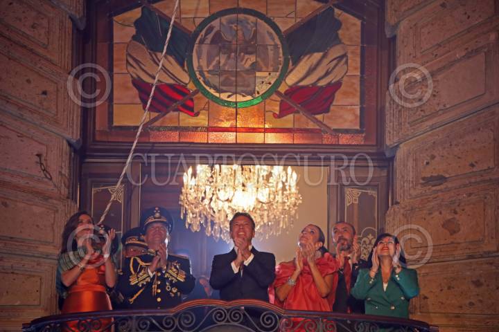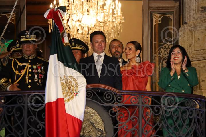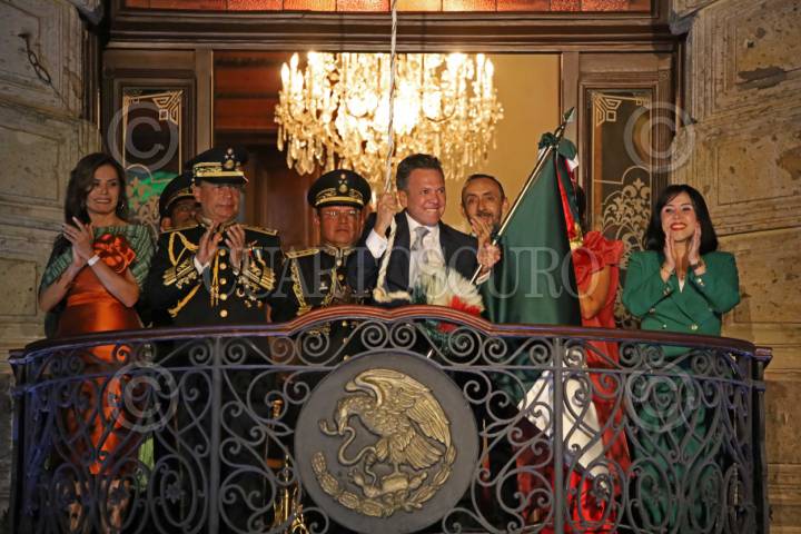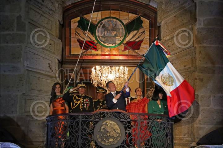GUADALAJARA, JALISCO. 15SEPTIEMBRE.-Pablo Lemus, Gobernador del estado, durante el tradicional grito de independencia desde el balcón de Palacio de Gobierno ante cientos de personas que asistieron a la Plaza de Armas. FOTO: FERNANDO CARRANZA GARCIA / CUARTOSCURO.COM