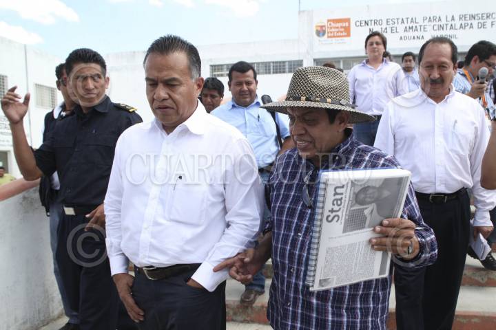 CINATALAPA, CHIAPAS, 29FEBRERO2012.- Los senadores del PRD, Carlos Sotelo García, vicecoordinador parlamentario; Rubén Velázquez López, José Luis García Zalvidea y Leonel Godoy Rangel acudieron el día de hoy al Centro de Readaptación Social El Amate, en el municipio de Cintalapa, Chiapas, para visitar al exgobernador de la entidad, Pablo Salazar Mendiguchía, quien les comentó las condiciones en que se encuentra, así como las inconsistencias en las acusaciones por las que se encuentra en prisión. Previo a este encuentro, un grupo de manifestantes interceptó el vehículo donde viajaban los legisladores a las afueras del penal, donde los mantuvieron durante alrededor dos horas sin permitirles descender del mismo, esto a fin de obstaculizar su visita al exgobernador Pablo Salazar Mendiguchía. FOTO: CUARTOSCURO.COM