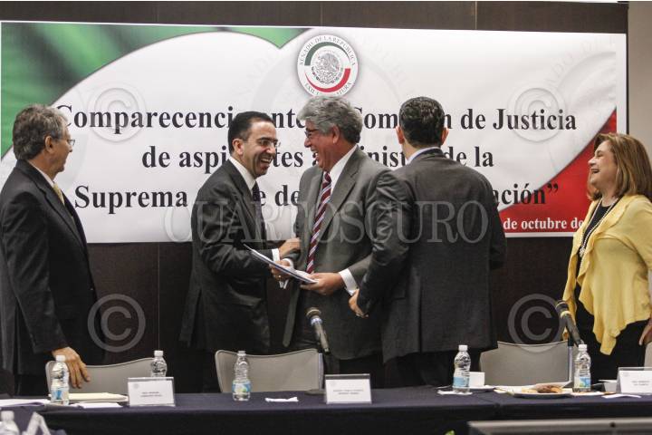 MÉXICO, D.F., 29OCTUBRE2012.- Comparecencia ante la Comisión de Justicia del Magistrado Pablo Vicente Monroy Gómez, aspirante a Ministro de la Suprema Corte de Justicia de la Nación (SCJN). El aspirante a ministro de la Suprema Corte también habló sobre Joaquín "el Chapo Guzmán", a quien encarceló hace 20 años cuando se desempeñaba como ministerio público, y no dudó en decir que lo volvería a sentenciar bajo las mismas circunstancias legales. FOTO: IVAN MENDEZ /CUARTOSCURO.COM