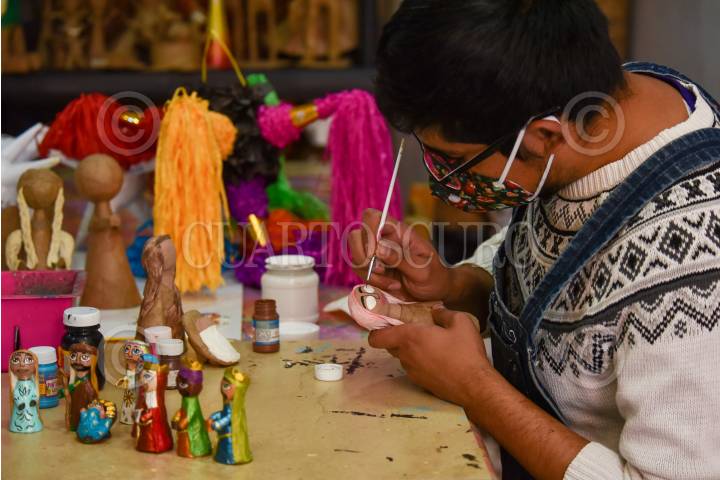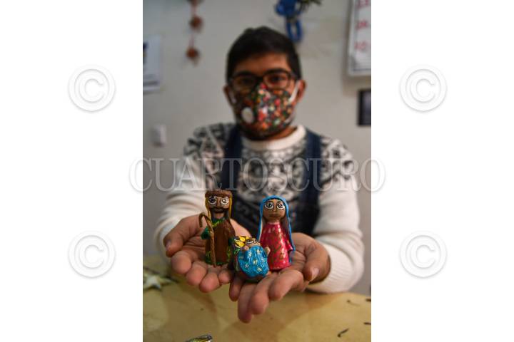 En el taller de Bicho Cartonería se encuentran trabajando nacimientos para esta época del año, en su mayoría han sido por encargo ya que la pandemia por COVID-19 ha dificultado sus actividades como talleres y ventas.