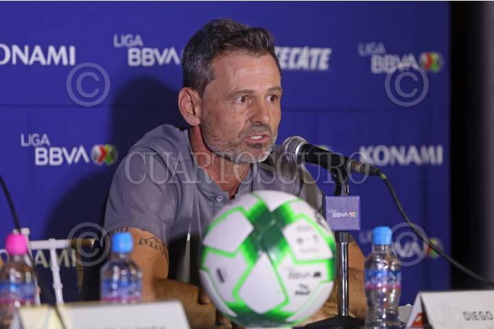 Diego Cocca (DT Atlas), durante la conferencia de prensa que ofreció esta noche en las instalaciones del Estadio Jalisco.