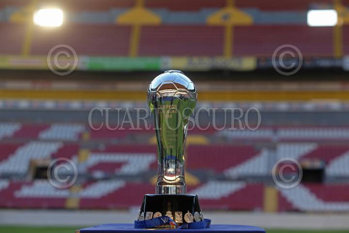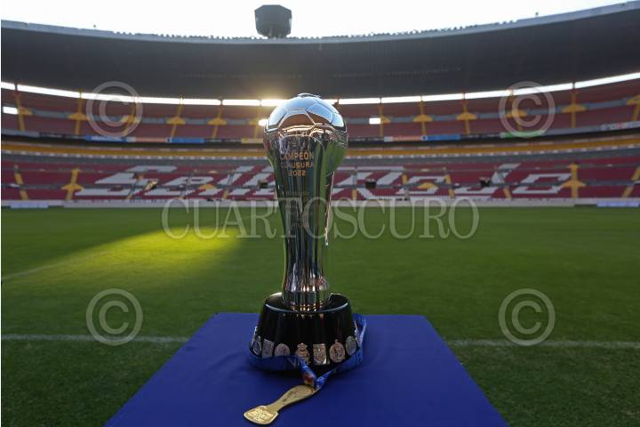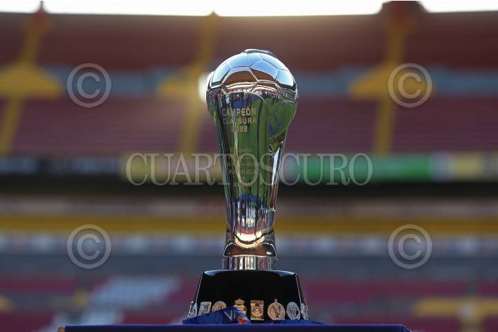 El trofeo de la Liga BBVA MX del Torneo Grita México Clausura 2022, durante su exhibición en el Estadio Jalisco, previo al juego de ida de la final del futbol mexicano entre Atlas y Pachuca.
