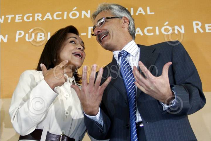 MÉXICO, D.F. 14NOVIEMBRE2007.- La secretaria de educación pública, Josefina Vasquez Mota firmó un convenio con el Club de futbol Real Madrid. En la imagen con Jesús Martínez Patiño, presidente del equipo mexicano Pachuca. FOTO:PAOLA HIDALGO/CUARTOSCURO.COM