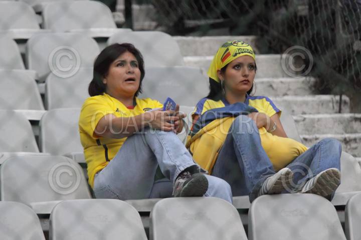 MÉXICO, D.F., 08FEBRERO2009.- Dos aficionadas americanistas, observan como su equipo abandona la cancha despúes de la derrota ante el Pachuca. FOTO: SÁSHENKA GUTIÉRREZ/CUARTOSCURO.COM