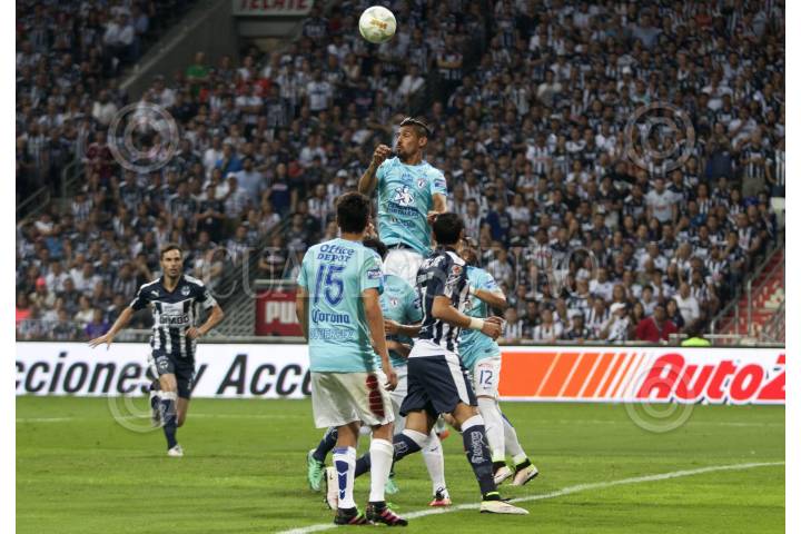 MONTERREY, NUEVO LEÓN, 29MAYO2016.- Jara Franco del equipo de los Tuzos del Pachuca, alcanza el balón en un tiro de esquina en contra de los Rayados del Monterrey, en el estadio BBVA Bancomer, en la Final de la Liga MX, Clausura 2016. FOTO: GABRIELA PÉREZ MONTIEL / CUARTOSCURO.COM