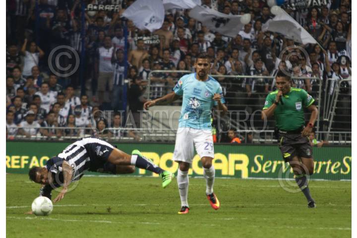 MONTERREY, NUEVO LEÓN, 29MAYO2016.- Dorlan Pabón del equipo de los Rayados del Monterrey se disputa el balón con Emmanuel García del equipo de los Tuzos del Pachuca, en el estadio BBVA Bancomer, en la Final de la Liga MX, Clausura 2016. FOTO: GABRIELA PÉREZ MONTIEL / CUARTOSCURO.COM