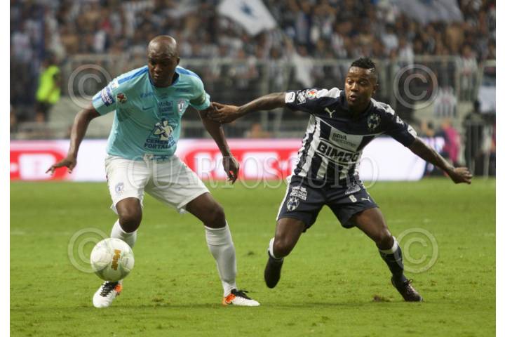 MONTERREY, NUEVO LEÓN, 29MAYO2016.- Edwin Cardona del equipo de los Rayados del Monterrey se disputa el balón con Aquivaldo Mosquera del equipo de los Tuzos del Pachuca, en el estadio BBVA Bancomer, en la Final de la Liga MX, Clausura 2016. FOTO: GABRIELA PÉREZ MONTIEL / CUARTOSCURO.COM