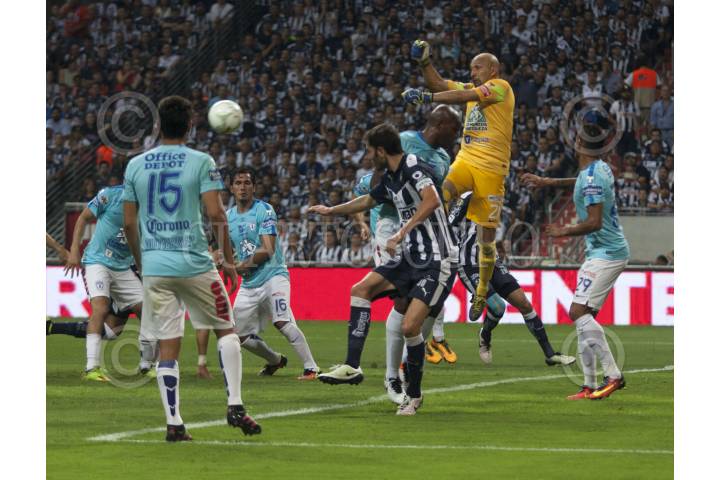 MONTERREY, NUEVO LEÓN, 29MAYO2016.- Oscar Pérez, portero del equipo de los Tuzos del Pachuca, alcanza el balón en un tiro de esquina de los Rayados del Monterrey, en el estadio BBVA Bancomer, en la Final de la Liga MX, Clausura 2016. FOTO: GABRIELA PÉREZ MONTIEL / CUARTOSCURO.COM