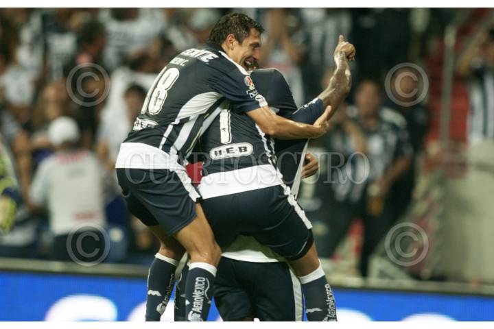 MONTERREY, NUEVO LEÓN, 29MAYO2016.- Jugadores del equipo de los Rayados del Monterrey celebran el gol ante el equipo de los Tuzos del Pachuca, en el estadio BBVA Bancomer, en la Final de la Liga MX, Clausura 2016. FOTO: GABRIELA PÉREZ MONTIEL / CUARTOSCURO.COM