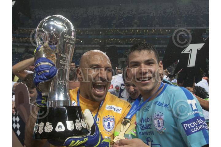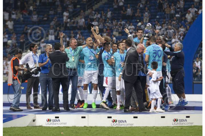 MONTERREY, NUEVO LEÓN, 29MAYO2016.- Jugadores del equipo de los Tuzos del Pachuca celebran el triunfo ante los Rayados del Monterrey, en el estadio BBVA Bancomer, en la Final de la Liga MX, Clausura 2016. FOTO: GABRIELA PÉREZ MONTIEL /CUARTOSCURO.COM