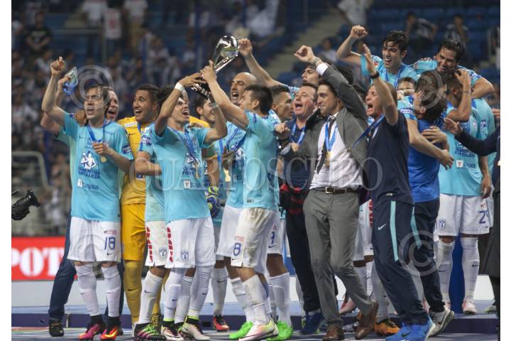 MONTERREY, NUEVO LEÓN, 29MAYO2016.- Jugadores y cuerpo técnico del equipo de los Tuzos del Pachuca celebran con la copa su triunfo, en el estadio BBVA Bancomer, en la Final de la Liga MX, Clausura 2016. FOTO: GABRIELA PÉREZ MONTIEL /CUARTOSCURO.COM