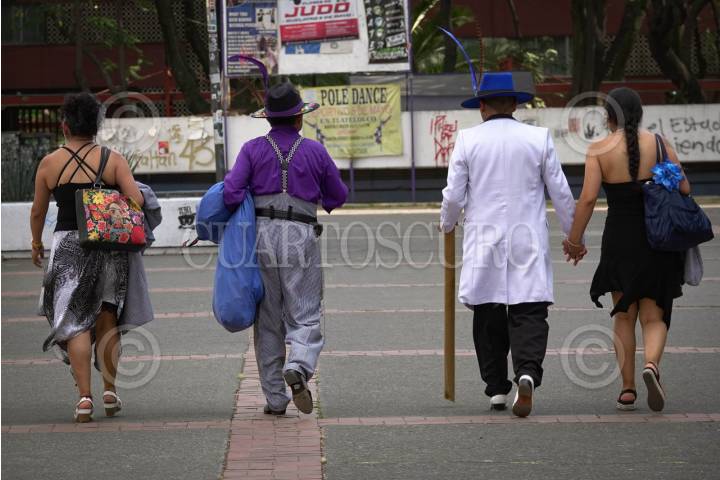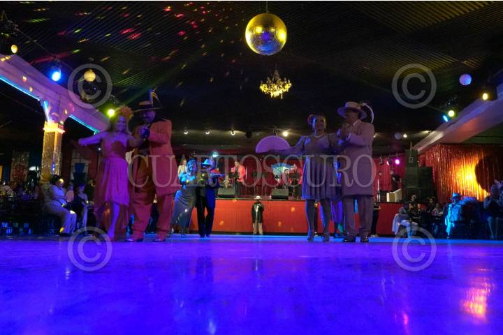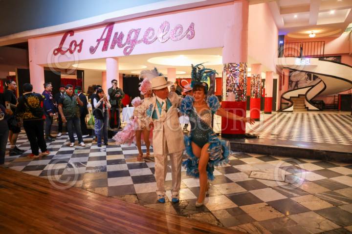 CIUDAD DE MÉXICO, 17JULIO2025.- Pachucos muestran su arte previo a la conferencia para anunciar las actividades por los 88 años del Salón Los Ángeles. Con una gran gala que se realizará el 09 de Agosto, este emblemático inmueble, al que le denomina la catedral del danzón, también ofrecerá música de otros géneros. Entre las bandas que se darán cita están; Triciclo Circus Band, Sr. Bikini, Tropikal Forever, Espanta Suegras & Insulini, entro otros. FOTO: MOISÉS PABLO/CUARTOSCURO.COM