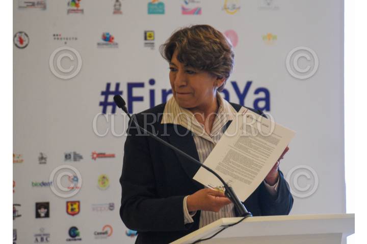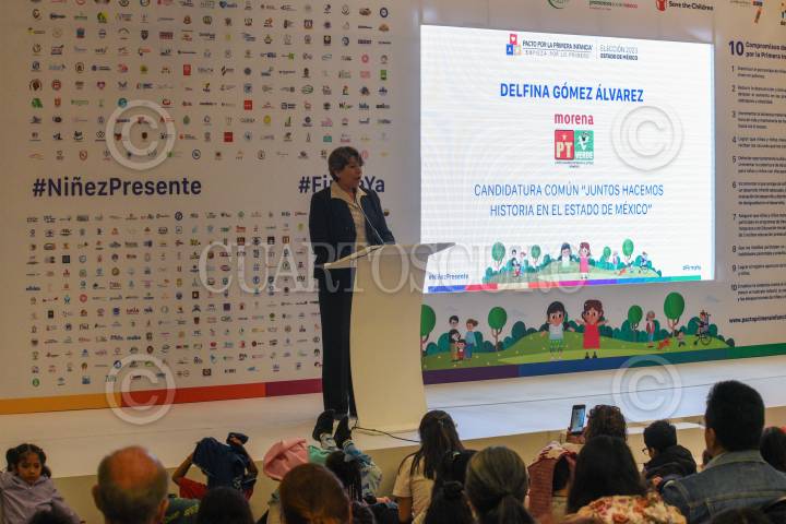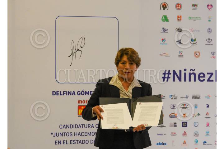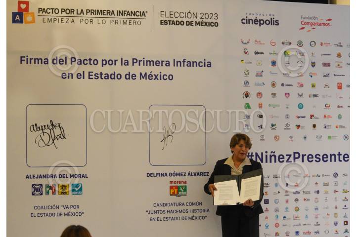 Delfina Gómez candidata a la gubernatura del Estado de México por por la alianza “Juntos Hacemos Historia” integrada por MORENA, PT y PVEM firmo el Pacto por la Primera Infancia.
