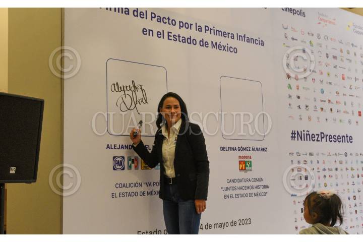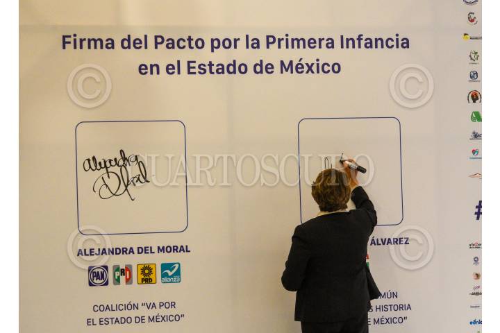 Alejandra del Moral candidata a la gubernatura “Va por el Estado de México” integrada por PRI, PAN, PRD y NA, firmo el Pacto por la Primera Infancia.