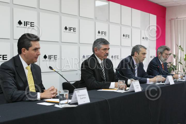 MÉXICO, D.F., 19ABRIL2010.- Los consejeros, Francisco Javier Guerrero Aguirre, Leonardo Valdés Zurita, Benito Nacif Hernández y Alberto Alonso y Coria en conferencia de prensa dieron los pormenores de las acciones que se llevaran acabo sobre la base de datos del padrón electoral. FOTO: CUARTOSCURO.COM