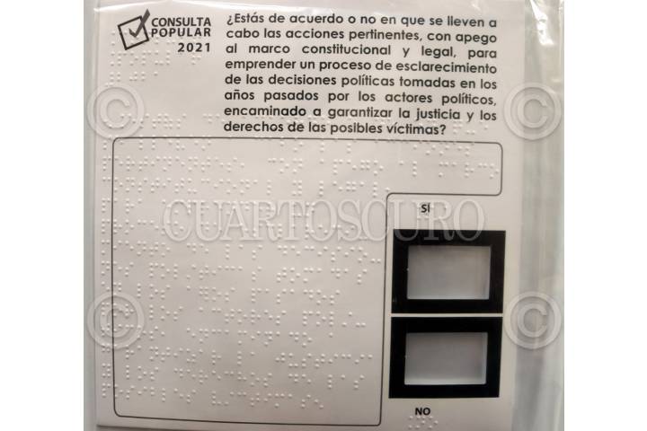 Una papeleta en lenguaje braille para participar en la Consulta Popular 2021.