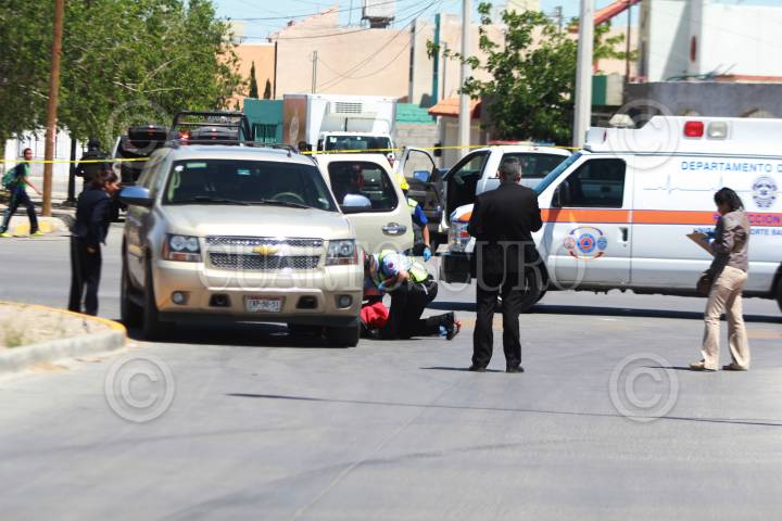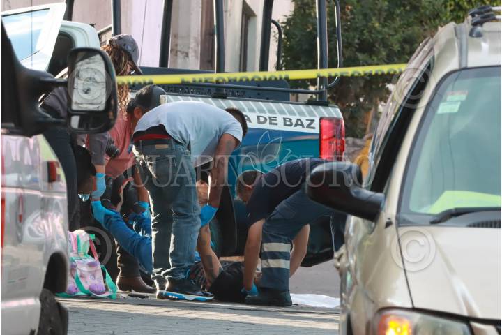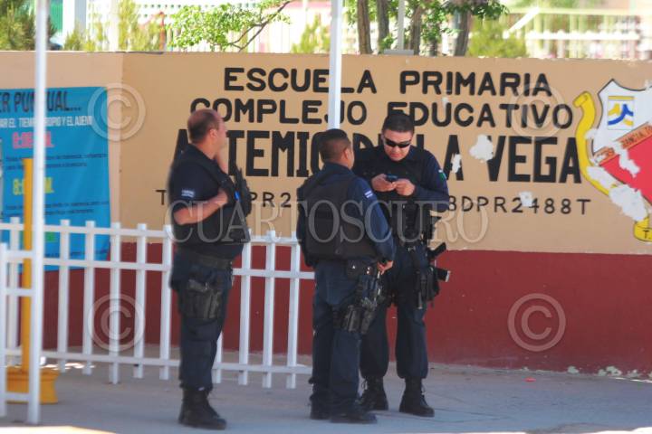 CIUDAD JUÁREZ, CHIHUAHUA, 11ABRIL2016.- La víctima acudió a dejar a su hijo a la escuela primaria "Artemio de la Vega", ubicada en las calles Arquitecto Adamo Boari y Arquitecto José Villagrán, cuando fue asesinado de varios balazos. El cuerpo del padre de familia quedo tendido a lado de una camioneta Tahoe Chevrolet color arena. Los hechos violentos fueron a la hora de la entrada del turno vespertino a los demás padres y alumnos quienes apenas ingresaban al complejo educativo. FOTO: NACHO RUIZ /CUARTOSCURO.COM