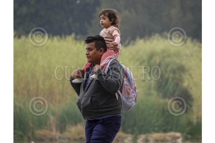 CIUDAD DE MÉXICO, 11MAYO2025.- Un hombre con una niña sobre sus hombros pasean al rededor del lago del Bosque de San Juan de Aragón. FOTO: MAGDALENA MONTIEL/CUARTOSCURO.COM