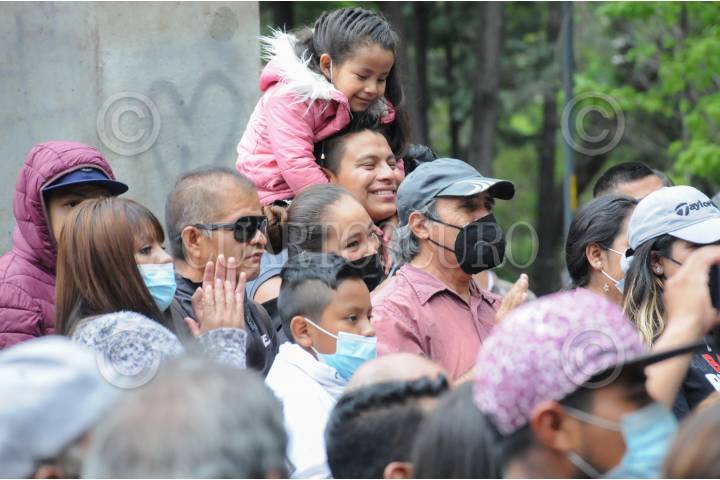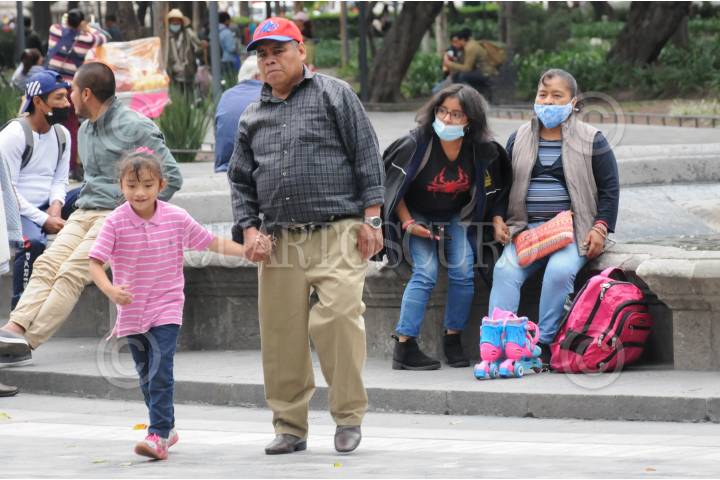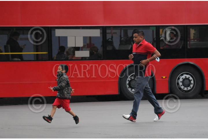 Un padre persigue a su hijo que se atraviesa corriendo Paseo de la Reforma.