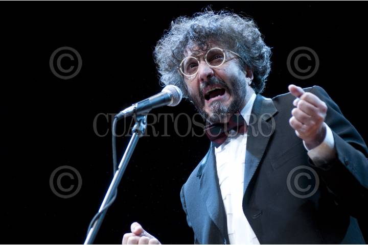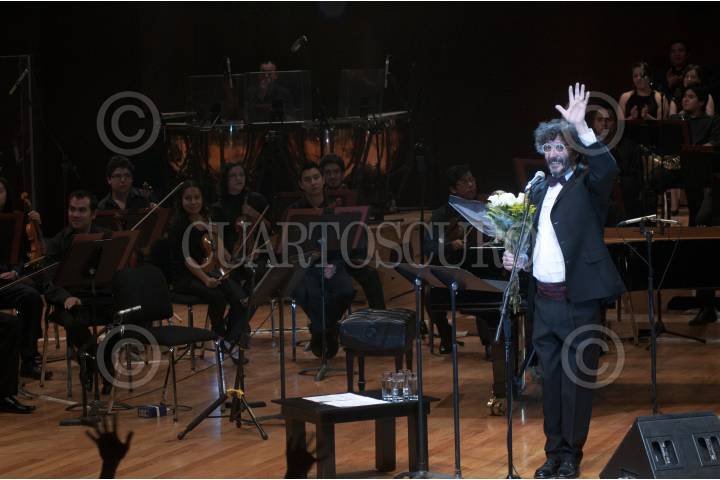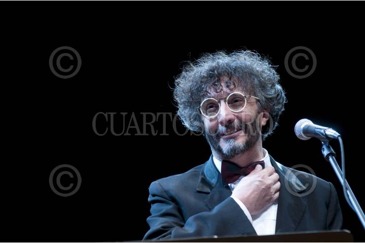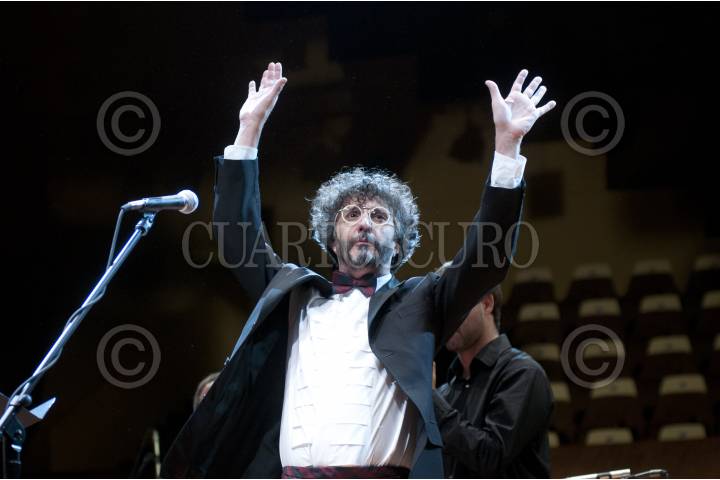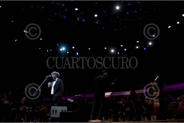 MÉXICO, D.F., 29NOVIEMBRE2011.- La tarde de hoy, el cantautor, de origen argetino, Fito Páez, presentó su disco "Canciones para Aliens" en la sala Nezahualcóyotl de la Universidad Nacional Autónoma de México, acompañado por la orquesta juvenil universitaria. En Enero del 2012, el álbum se trasnmitirá al espacio a través del proyecto "Música al espacio", dirigido por el Dr. Víctor García Garduño, miembro del departamento de Ingeniería en Telecomunicaciones de la UNAM. FOTO: FRANCISCO RODRÍGUEZ/CUARTOSCURO.COM