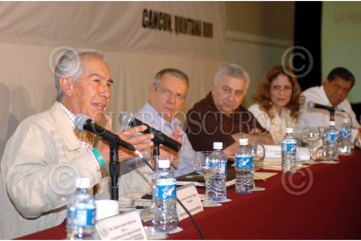 CANCUN, QUINTANA ROO, 28ENERO2005.- El príista Ignacio Pichardo Pagaza y los diputados José Carreño Carlon, Emilio Chuayffet y María Esther Sherman participaron como ponentes en la Asamblea General Extraordinaria del grupo Parlamentario del PRI de la LIX Legislatura, que se llevó a cabo en esta ciudad. FOTO: Pedro Argumedo/CUARTOSCURO.COM