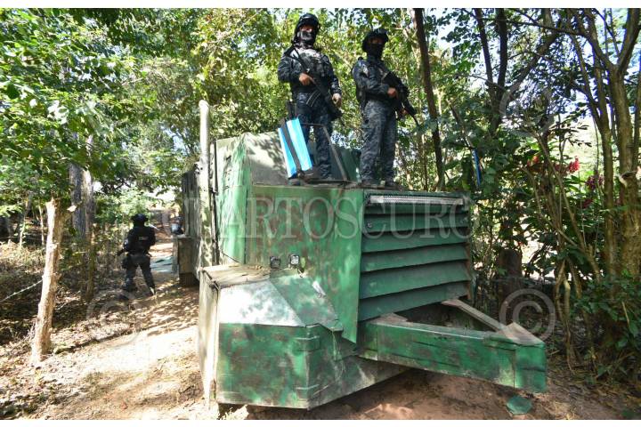 FRONTERA COMALAPA, CHIAPAS, 04ENERO2024.- La Fuerza de Reacción Inmediata PAKAL, realizó cateos en seis propiedades en el municipio de Frontera Comalapa, Chiapas, donde, desde hace dos años, grupos delictivos se disputaron el control de la plaza. Durante el operativo, las autoridades aseguraron un vehículo blindados de forma artesanal, decomisaron armas de grueso calibre y cientos de municiones de diferentes calibres, incluyendo, calibre 50. FOTO: TOÑO AGUILAR/CUARTOSCURO.COM