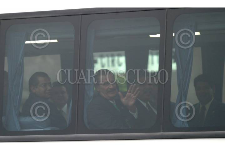 MEXICO, D.F. 01 SEPTIEMBRE 2004.- El presidente Vicente Fox, acompañado de una comitiva, se dirige al Palacio Legislativo de San Lázaro, luego de asistir al Palacio Nacional para colocarse la banda presidencial y dar inicio a su cuarto informe. FOTO: Sandra Perdomo/CUARTOSCURO.COM
