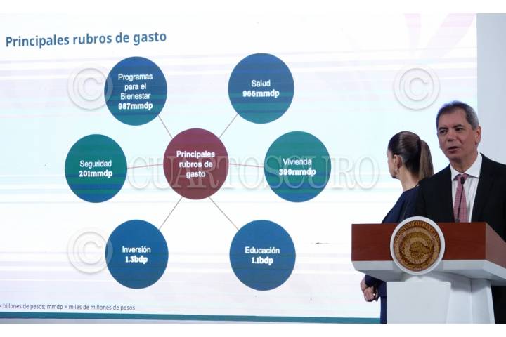 CIUDAD DE MÉXICO, 10SEPTIEMBRE2025.- Edgar Amador Zamora, secretario de Hacienda y Crédito Público, y la presidenta Claudia Sheinbaum Pardo durante la conferencia “Mañanera del Pueblo” desde Palacio Nacional en la que se abordaron detalles de sobre el recién entregado Paquete Económico 2026 FOTO: GALO CAÑAS/CUARTOSCURO.COM
