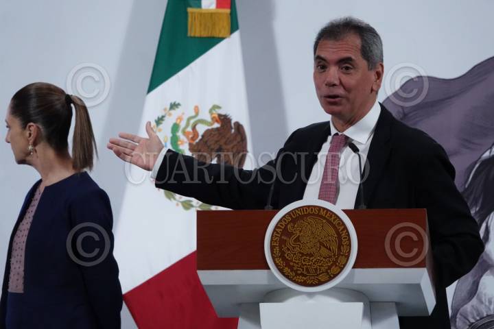 CIUDAD DE MÉXICO, 10SEPTIEMBRE2025.- Edgar Amador Zamora, secretario de Hacienda y Crédito Público, durante la conferencia “Mañanera del Pueblo” desde Palacio Nacional en la que se abordaron detalles de sobre el recién entregado Paquete Económico 2026 FOTO: GALO CAÑAS/CUARTOSCURO.COM
