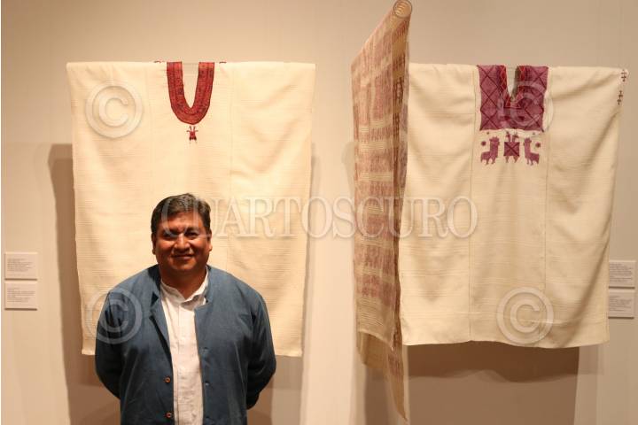 El artista Remigio Mestas Revilla durante la inauguración de la exposición "Textiles de Oaxaca".