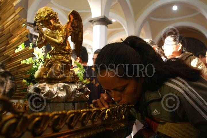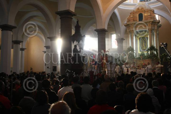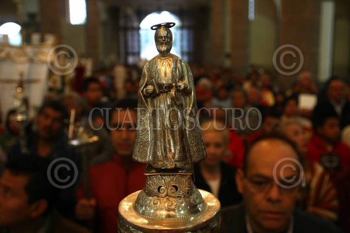 SAN PEDRO CHOLULA, PUEBLA, 24JUNIO2011.- Llegan las reliquias del beato Juan de Palafox y Mendoza a la Capilla Real de San Pedro Cholula, en la que desde muy temprana hora, cientos de fieles celebraron con rezos y alabanzas durante la misa el regreso del beato en su paso por Puebla. FOTO: FRANCISCO GUASCO/CUARTOSCURO.COM