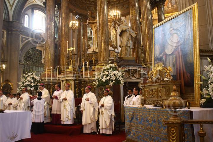 PUEBLA, PUEBLA, 24JUNIO2011.- El cardenal primado de México, Norverto Rivera, ofició la misa de recepción de las reliquias del beato Juan de Palafox y Mendoza en la catedral de Puebla. FOTO: FRANCISCO GUASCO/CUARTOSCURO.COM