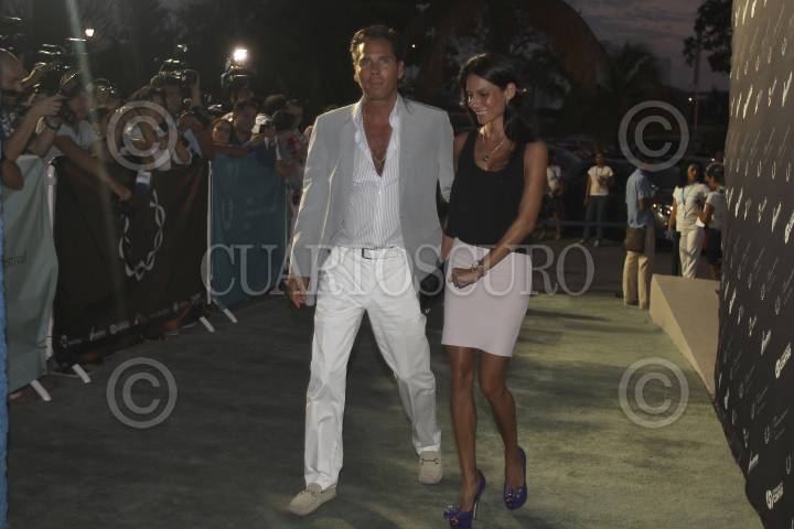 CANCÚN, QUINTANNA ROO 21ABRIL2013.- Roberto Palazuelos, actor y empresario hotelero, llega con una acompañante al arranque de la segunda edición del festival de cine que se realizará en cinco destinos del Estado. Se proyectarán 76 películas en 250 funciones gratuitas; el evento inicia oficialmente este domingo . FOTO: CSPHOTO /CUARTOSCURO.COM