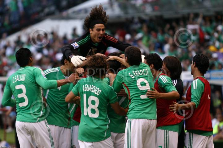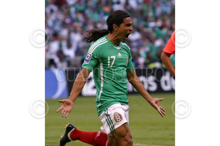 MÉXICO D.F., 10OCTUBRE2009.- Francisco Palencia de la Selección Mexicana de Futbol festeja su anotación durante el encuentro en contra de su similar de El Salvador, ganando México 4 goles a 1 en el ultimo partido del hexagonal final rumbo a Sudafrica 2010 que se realizo en el estadio Azteca. FOTO: RODOLFO ANGULO/CUARTOSCURO.COM