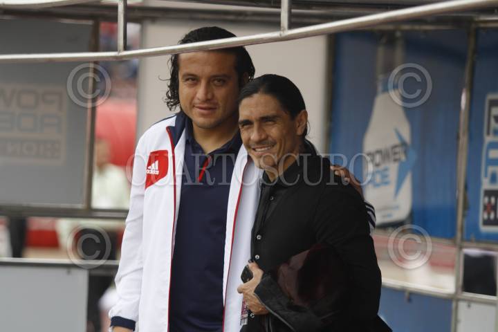 CIUDAD JUÁREZ, CHIHUAHUA, 20MARZO2013.- Héctor Reynoso y Francisco Palencia, durante un entrenamiento del primer equipo de las Chivas de Guadalajara en la ciudad fronteriza. El club informó el día de hoy que el exdelantero rojiblanco regresa al equipo como Director de Fútbol. FOTO: NACHO RUIZ /CUARTOSCURO.COM