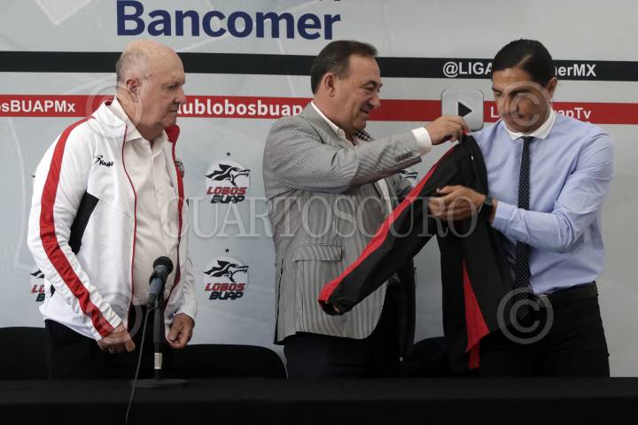 PUEBLA, PUEBLA, 01JUNIO2018.- La directiva del Club Lobos Buap, realizó la presentación oficial de Juan Francisco Palencia como director técnico y de Manuel Lapuente como director deportivo para el próximo torneo Apertura 2018 de la Liga MX. FOTO: HILDA RIOS /CUARTOSCURO.COM