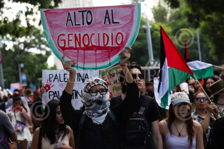 CIUDAD DE MÉXICO 17AGOSTO2025.- Los manifestantes que marcharon por Palestina, piden un alto a los ataques que comete Israel en la Franja de Gaza. FOTO: DANIEL AUGUSTO/ CUARTOSCURO.COM