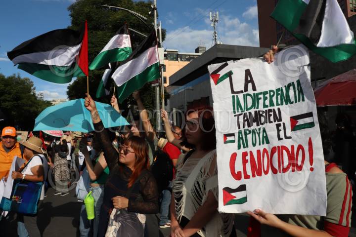 OAXACA, OAXACA, 19SEPTIEMBRE2025.- Activistas pro Palestina se manifestaron durante el informe de la presidenta de la República Claudia Sheinbaum Pardo en Oaxaca de cara a su primer año de gobierno. FOTO: CAROLINA JIMÉNEZ MARISCAL/CUARTOSCURO.COM