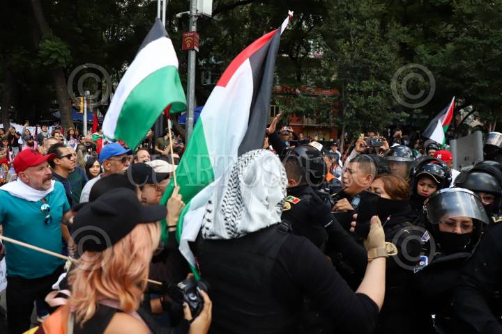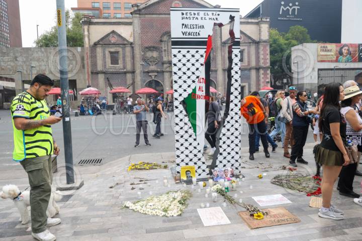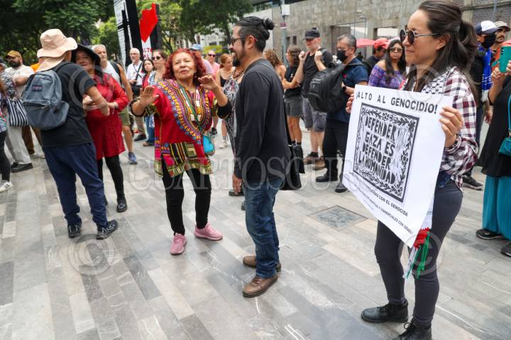 CIUDAD DE MÉXICO, 17AGOSTO2025.- Los manifestantes pro Palestina exigen un alto al fuego y que el gobierno mexicano rompa relaciones con el estado de Israel ante los actos que comente en la Franja de Gaza. FOTO: DANIEL AUGUSTO/ CUARTOSCURO.COM