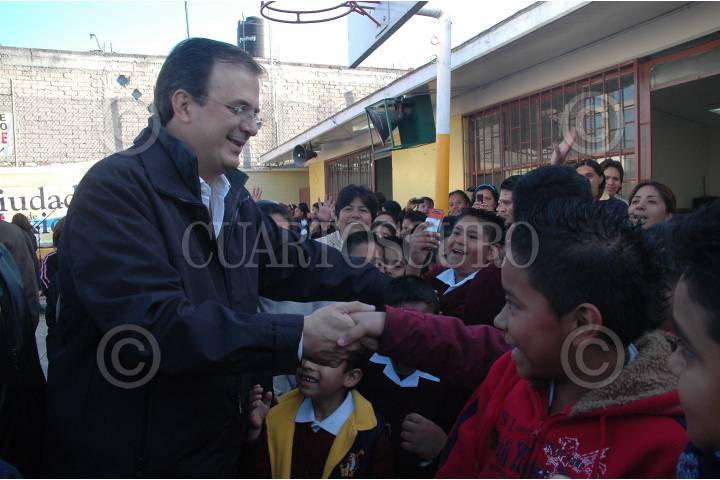 MÉXICO D.F., 06FEBRERO2009.- Marcelo Ebrard Jefe de Gobierno del Distrito Federal saluda a los niños de la Escuela Primaria “Prof. Emiliano Negrete López” durante la supervision de obras de la primaria FOTO: SÁSHENKA GUTIÉRREZ/CUARTOSCURO.COM